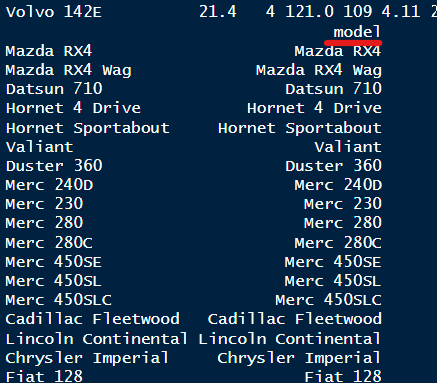 - จากนั้นเรากำหนดให้ car_name คือตัวแปรของ rownames(mtcars)