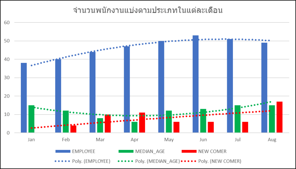 ข้อที่ 3 :: หาว่าประเภทพนักงานที่ไม่ผ่านการประเมินในช่วง 8 เดือนที่ผ่านมาตั้งแต่ต้นปี แนวโน้มเป้นไปในพนักงานกลุ่มใดมากที่สุด
